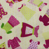 This adorable, girly lemon yellow fabric with pink and green dresses is high quality, lightweight and hangs well. It's perfect for many projects, including quilting, patchwork, dressmaking, bunting and cushion covers.