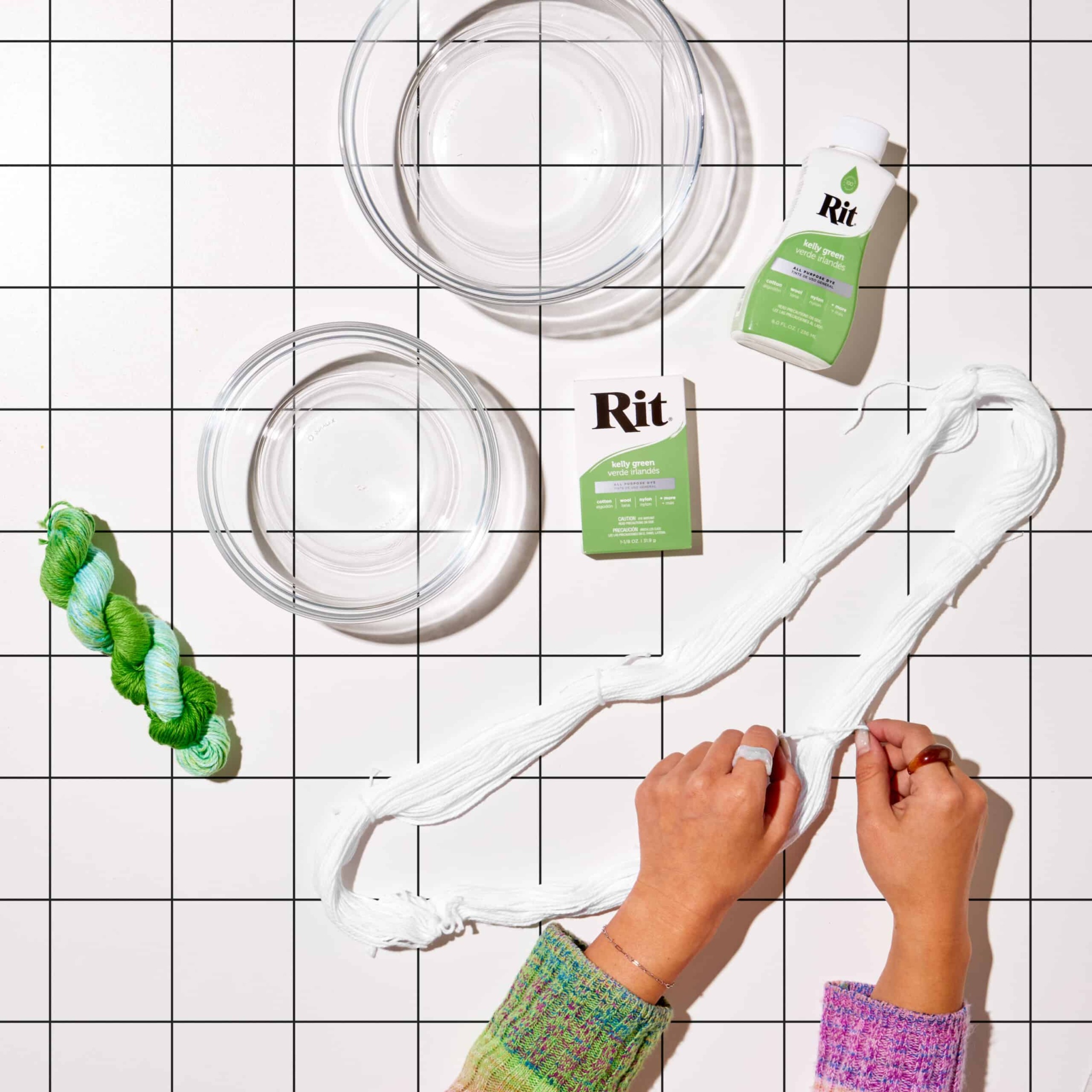 For best results, we recommend dyeing cotton or wool yarn. For synthetic yarn, you’ll need to use Rit DyeMore for Synthetics.