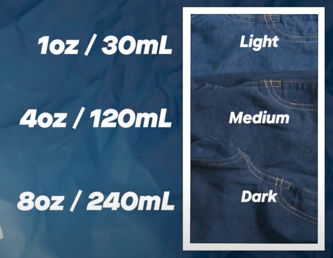 - Refer to the colour chart on the side of the outer box or below to determine how much dye is suggested for your desired outcome. Please note that colour results may vary by fabric type, amount of dye used, water temperature and time in dyebath. If overdyeing an existing colour, keep in mind that the rules of colour mixing will apply.
