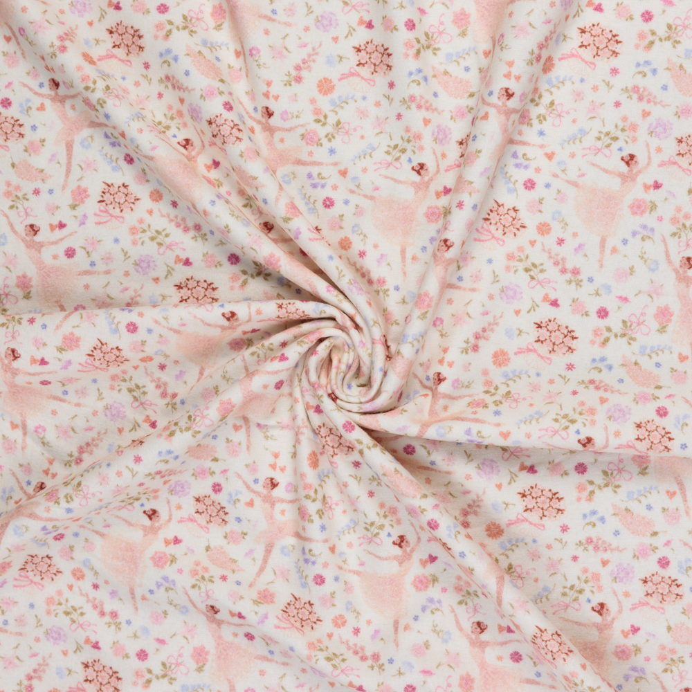 100% Cotton Digital Flannel Print: Ballerinas on Ivory - Per ½ Metre