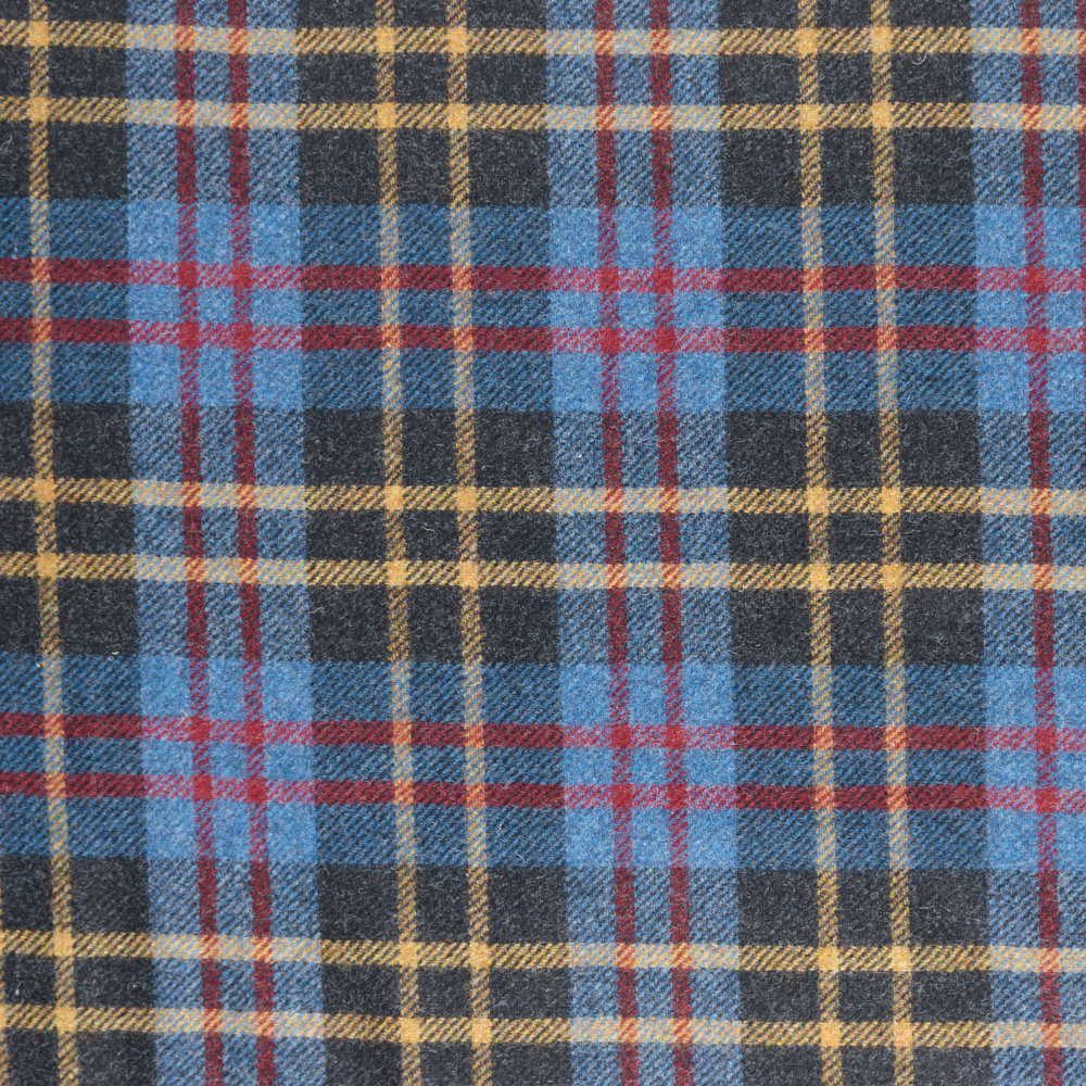 This 100% English wool tartan blends a palette of soft muted blue, warm mustard yellow, deep crimson red, and classic black in a timeless check pattern. The harmonious mix of colours brings a contemporary twist to a traditional design, season-ready, versatile, and effortlessly stylish. Midweight with a subtly textured hand and fully opaque finish, it’s perfect for jackets, suiting separates, and skirts. Lining is recommended for comfort