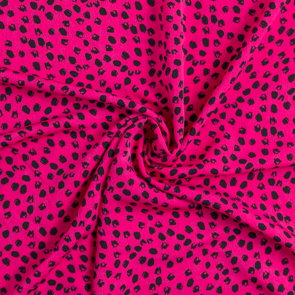 Design eveningwear straight off the runway with this 100% Viscose - Hot Pink Spot. A bright magenta shade effortlessly complements the softness of viscose. This one has a subtle, crepe texture. With a stunningly fluid drape, create evening gowns and lightweight dresses, jumpsuits and statement high-waisted wide leg trousers. A lining may be desired for additional modesty and structure, but isn't always necessary.