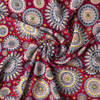 Bold mandala print on a burgundy background. Perfect for shirting and summery maxi dresses. This soft and slightly sheer viscose has a beautiful drape. A lining may be required.