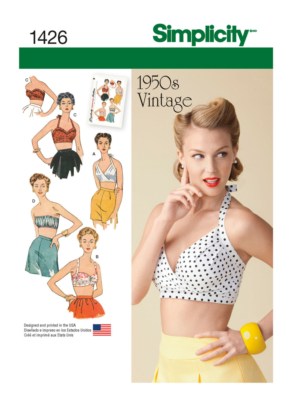 Women's vintage bra tops are a flirty way to pull off a retro look. Make a faux wrap halter, ruched with cross back, balconette halter or strapless with button back or a bandeau. Wear alone or under tops when bra is meant to be seen!