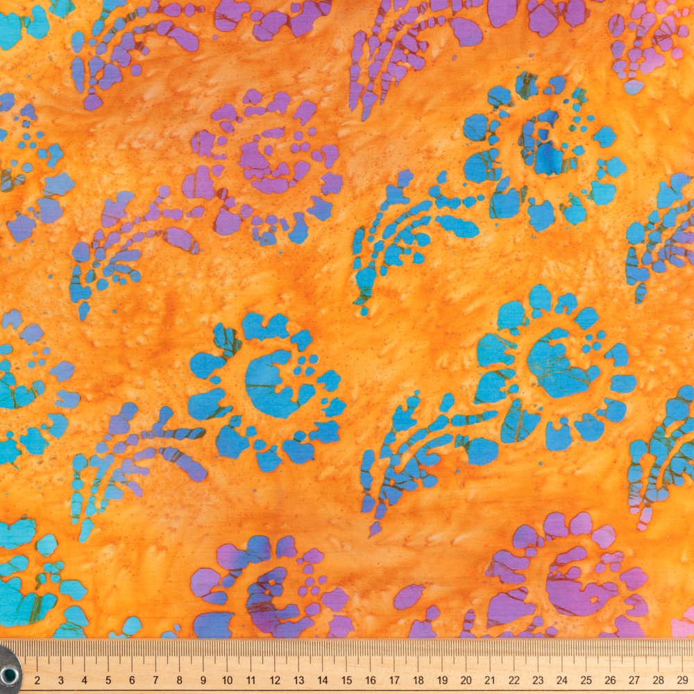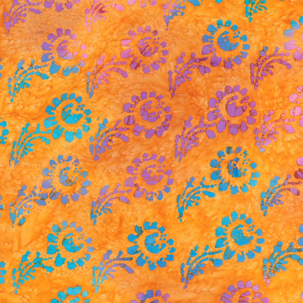 50's Cotton Batik: Multi Flowers on Tangerine - Per ½ Metre