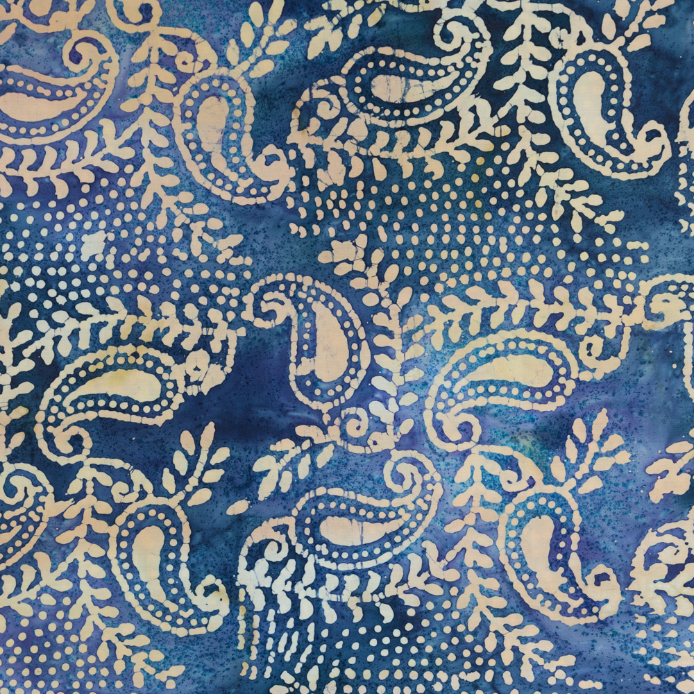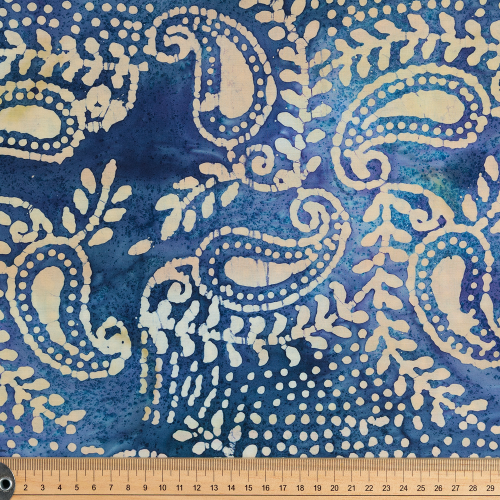 50's Cotton Batik: Paisley on Blue - Per ½ Metre