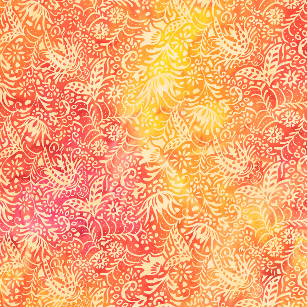 50's Cotton Batik: Ornamental Floral Orange