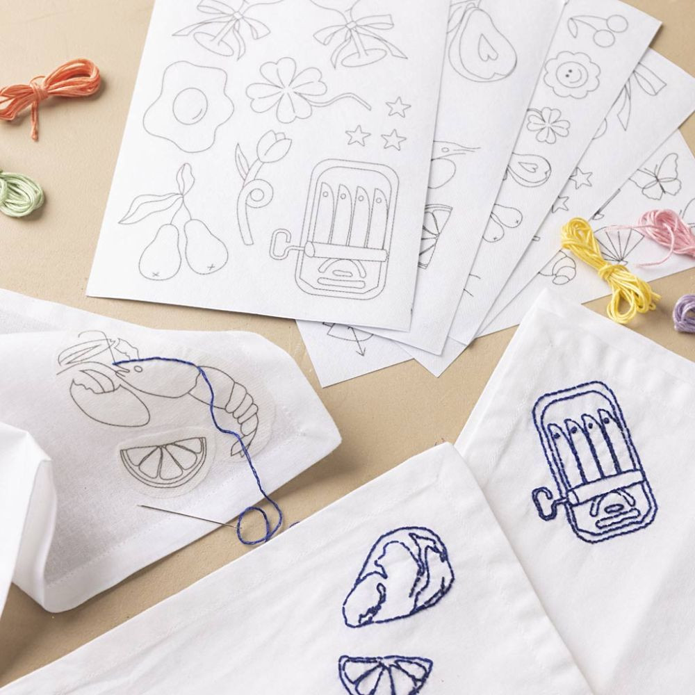 Want to get started right away with beautiful embroidery projects? With our self-adhesive embroidery paper with designs, you don't have to draw anything first. Cut out the desired design, remove the backing and adhere it to the fabric. Now you can embroider directly on the fabric with your favourite stitches – and when you’re done, simply dissolve the paper in water. This is done either by soaking it for 10 minutes or in the washing machine.