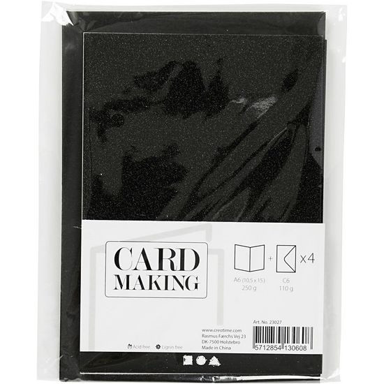 Double blank cards of heavyweight cardboard (230 g) with matching paper envelope (110 g) which has a gummed envelope closure.