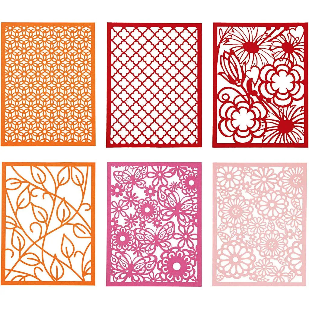 1 Pack, 24 pc, A6, 104x146 mm, 200 g, Orange, Pink, Red, Rose An assortment of lasercut cardboard with fine detailed lace patterns. Pre-prepared for c… Read More
