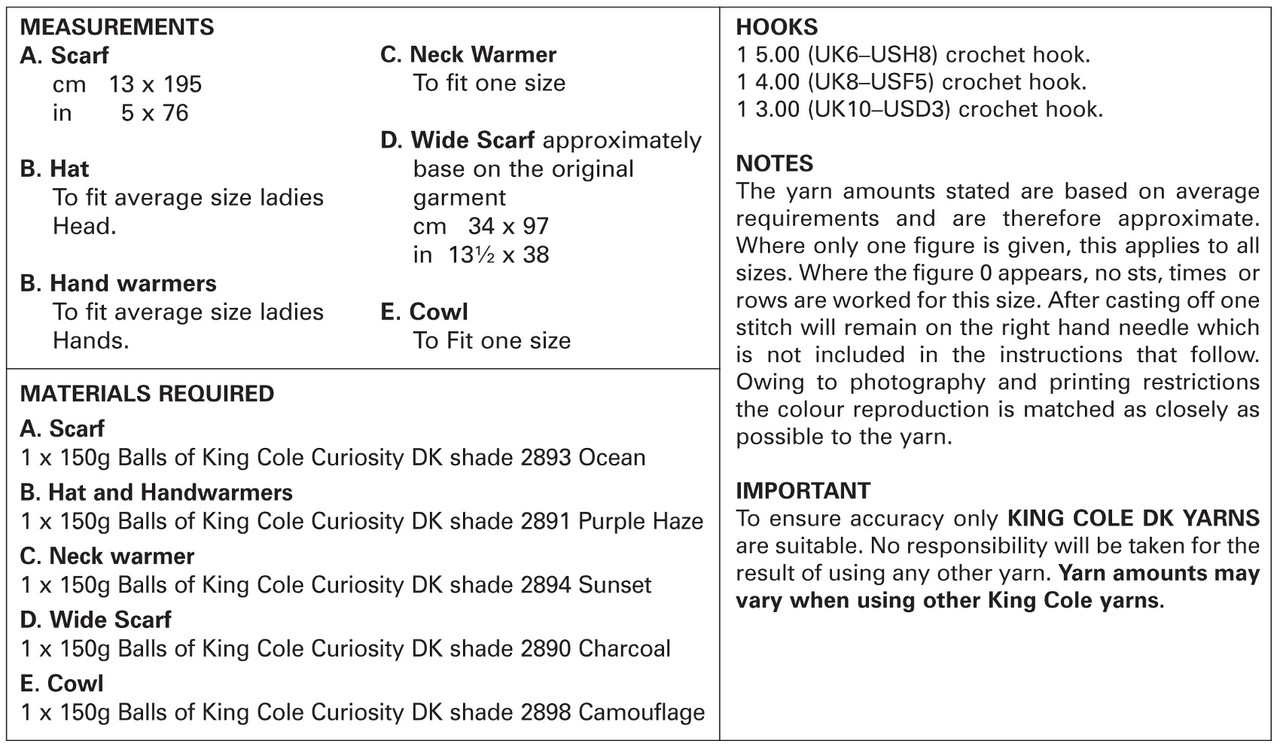 Accessories in King Cole Curiosity DK (5149) CROCHET
