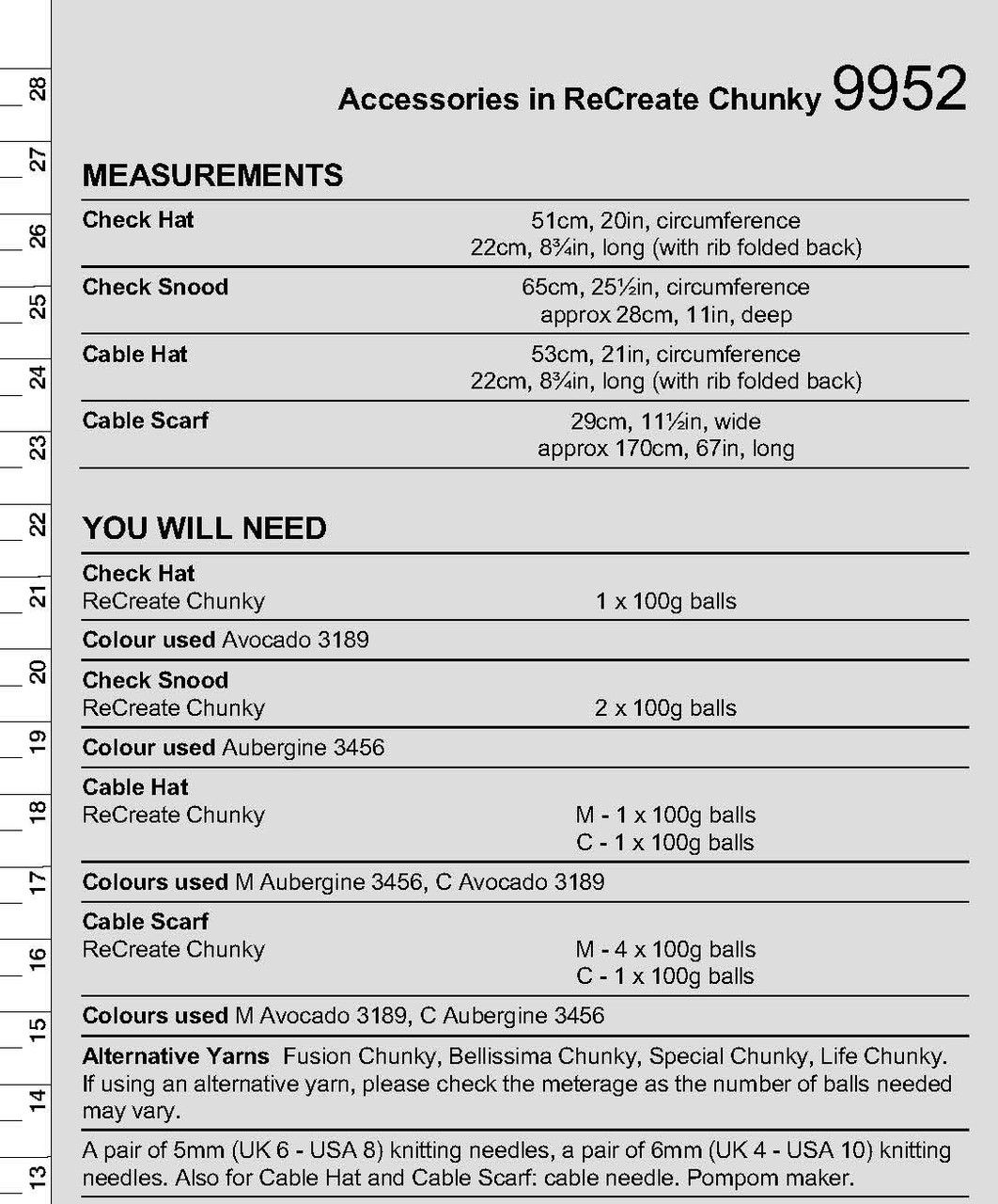 You will also need:A pair of 5mm (UK 6 - USA 8) knitting needles, a pair of 6mm (UK 4 - USA 10) knitting needles. Also for Cable Hat and Cable Scarf: …