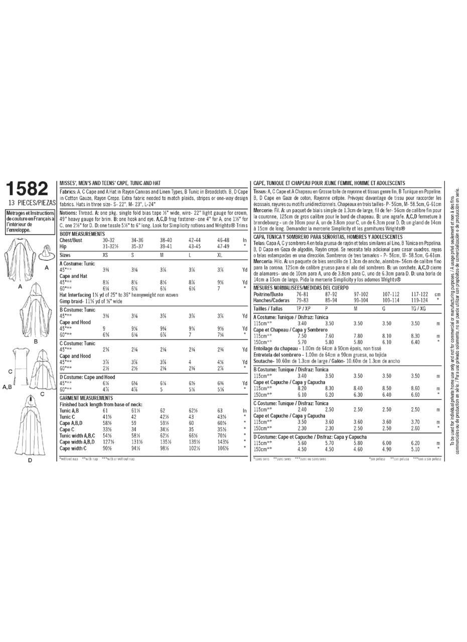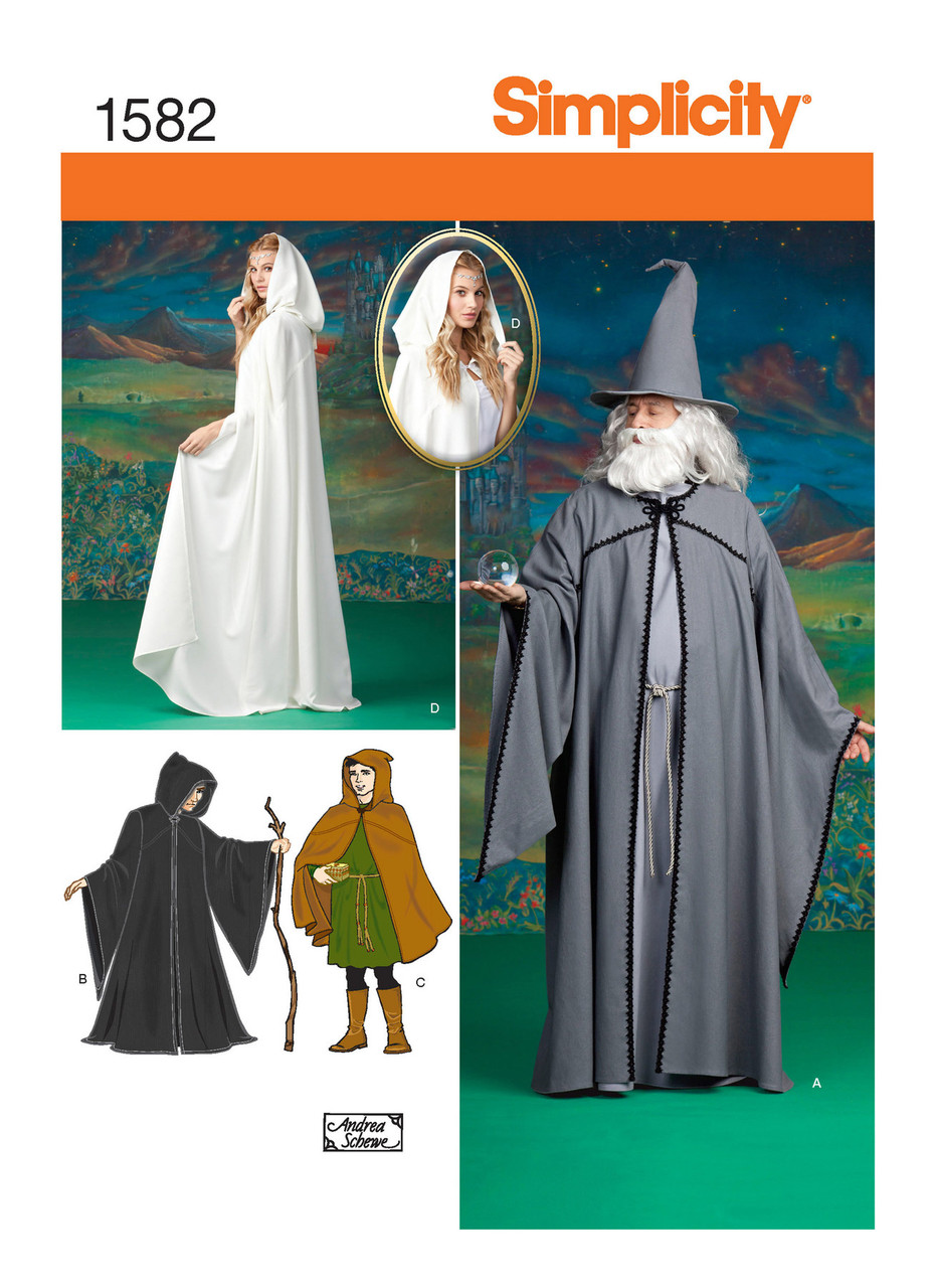 Women's, men and teen hooded cape costume in different lengths. Andrea Schewe. Simplicity sewing pattern.