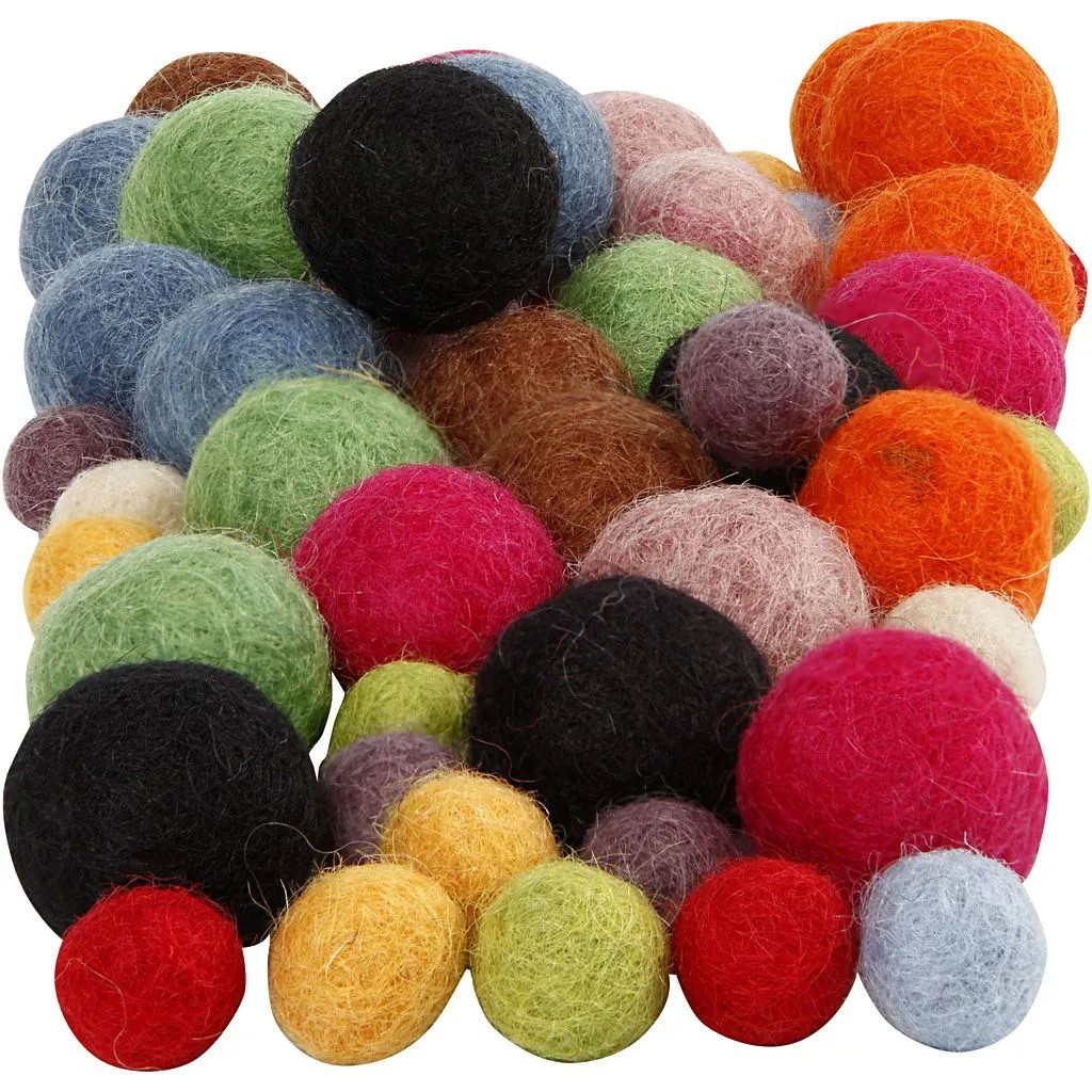 Assorted Felt Balls (52pcs) - Various Colours