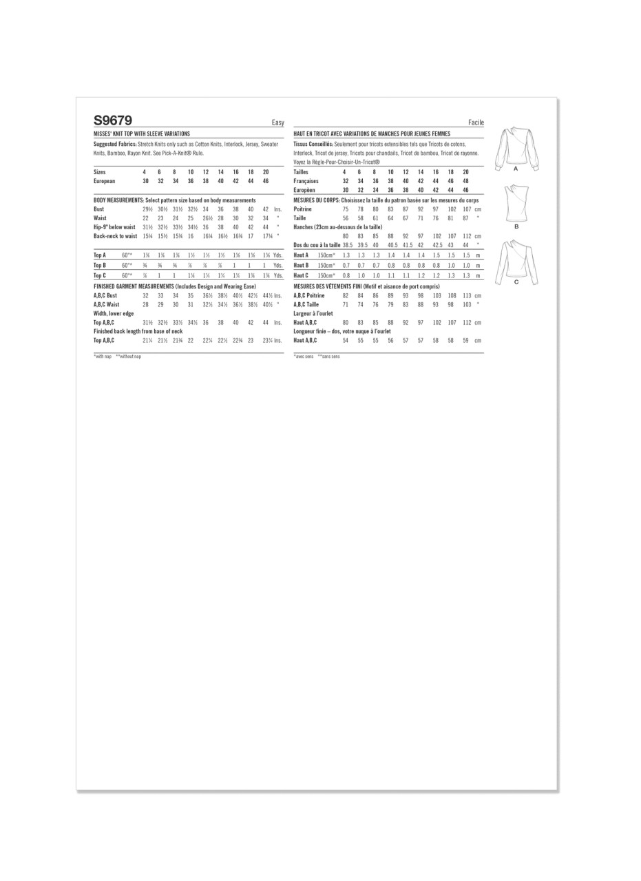 Asymmetric Cut-out w/Sleeve Variations Tops in Simplicity Misses' (S9679)