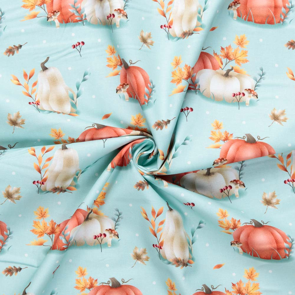 Autumn Awakening cotton prints featuring pumpkins and autumn foliage. Perfect for creating elegant quilts, sophisticated garments, and luxurious home accents. Printed on 100% cotton.