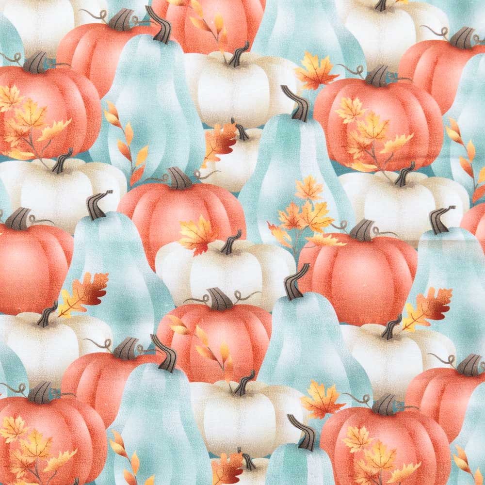Autumn Awakening cotton prints featuring pumpkins and autumn foliage. Perfect for creating elegant quilts, sophisticated garments, and luxurious home accents. Printed on 100% cotton.