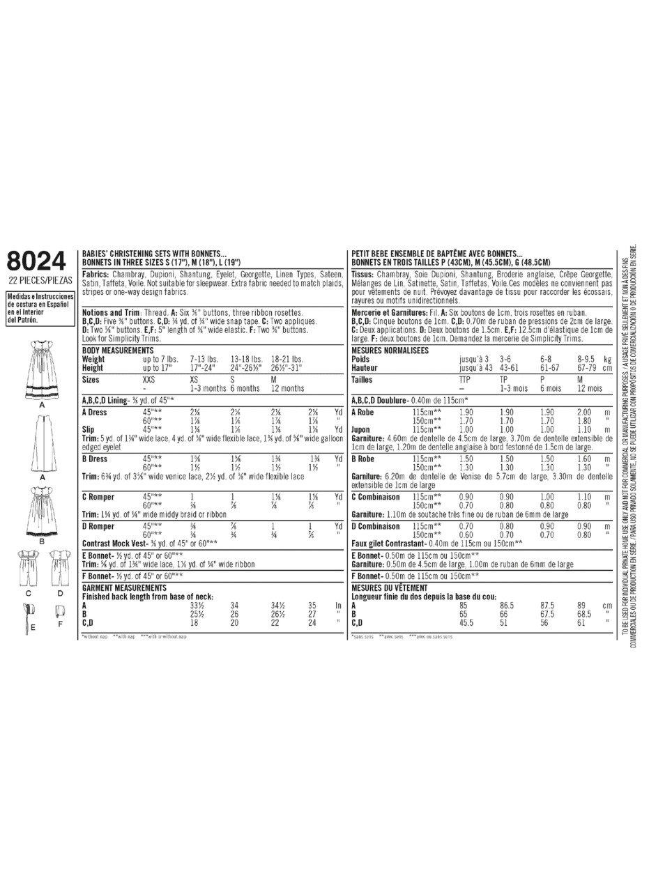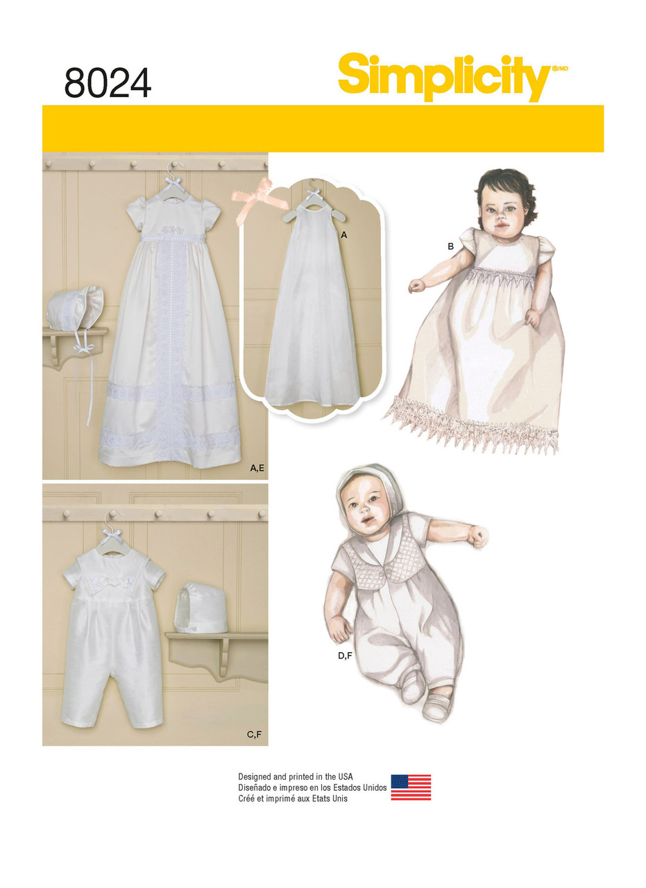 Babies' Christening Sets w/Bonnets in Simplicity Kids (S8024)