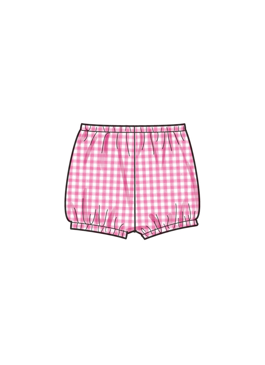 Button front dress has a lined fitted bodice with a ruffled lace trimmed collar and gathered skirt with lace trimmed pockets. Panty is finished with elastic. Headband in one size.
