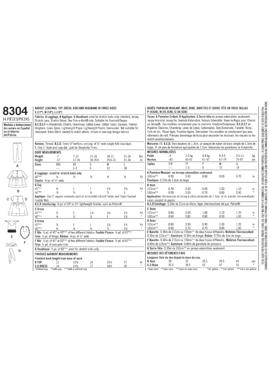 Cute and unique sportswear for babies. Pattern includes dress with heart shape elbow patches, top, leggings, headbands and stylish bibs. Headbands available in three sizes S (17") M (18") L (19").