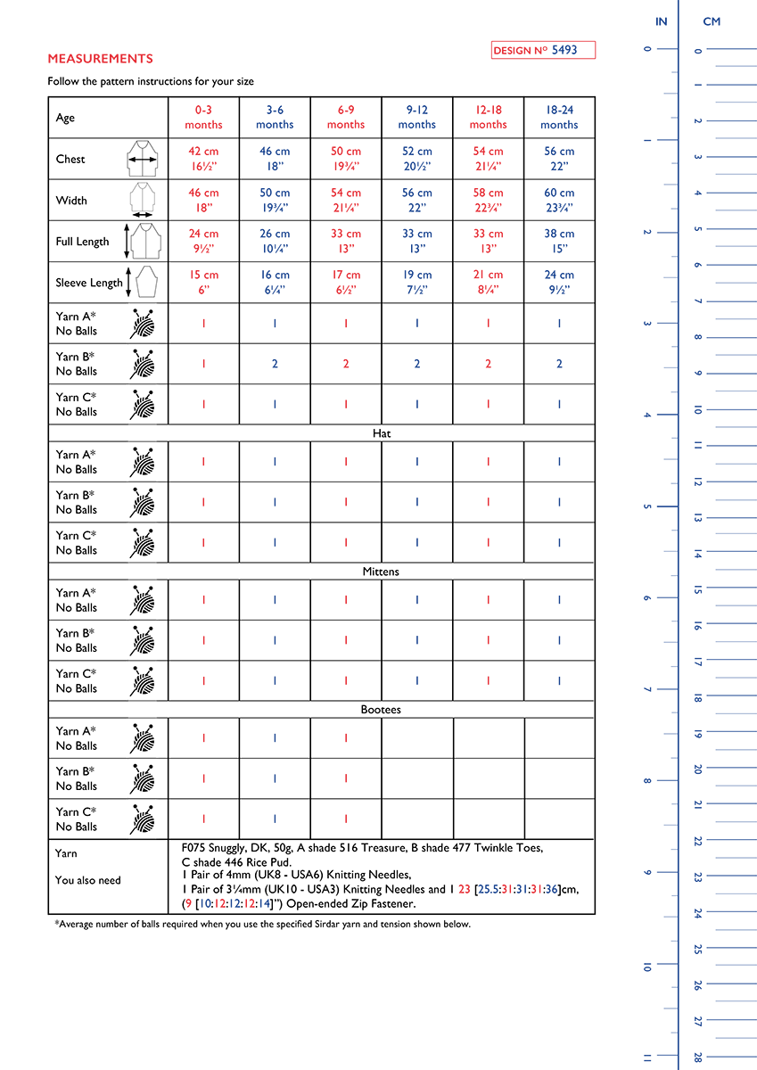 1 Pair of 4mm (UK8 - USA6) Knitting Needles, 1 Pair of 3¼mm (UK10 - USA3) Knitting Needles and 1 23 [25.5:31:31:31:36]cm, (9 [10:12:12:12:14]”) Open-ended Zip Fastener.