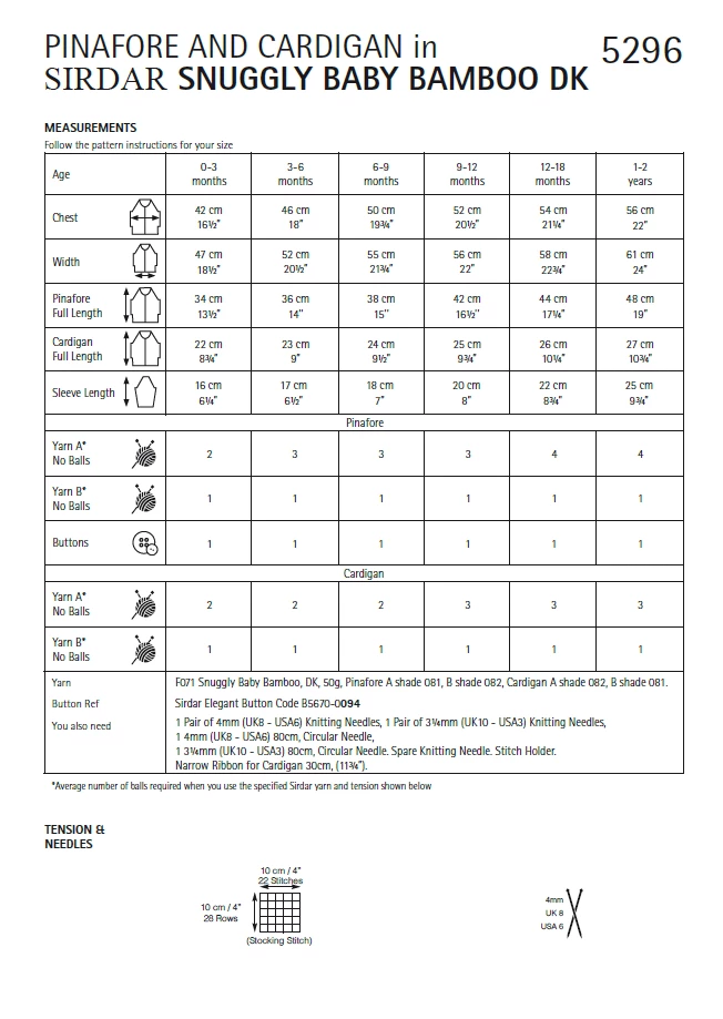 Pleats, picot edging and garter stitch trims bring this duo of knits together. The pattern includes a pinafore dress and matching cropped cardigan that knit up beautifully in Sirdar Baby Bamboo Double Knitting. Make this adorable set for a newborn or a child up to two years.