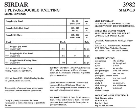 You will also need: Single Point Needles 4mm (USA 6) for the quick knit and DK shawls and Single Point Needles 3.25mm (USA 3) for the 3 Ply shawl.