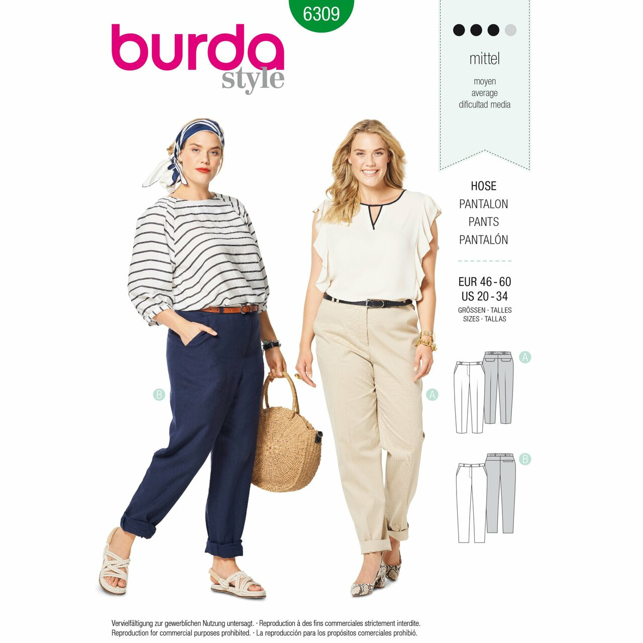 Pants/trousers with hip yoke pockets, back yoke and back elastic casing for a perfect and comfortable fit. These are figure-flattering basics for all year round.