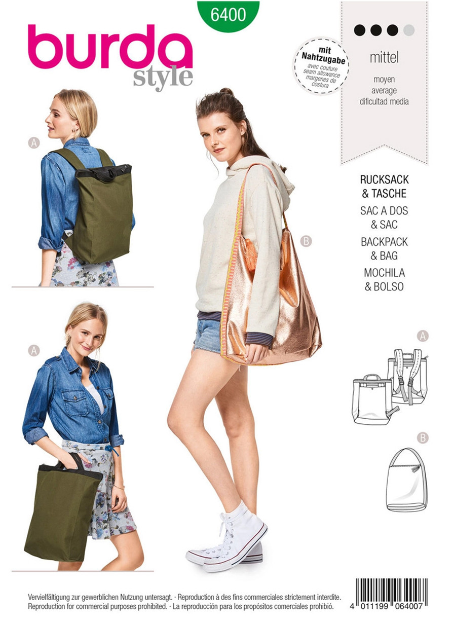 Cool backpack/rucksack, quick and easy to transform into a stylish bag by concealing the straps inside a special back compartment. Decorative trim gives the simple shopper with a zip fastener an interesting accent and also serves as a carrying strap.