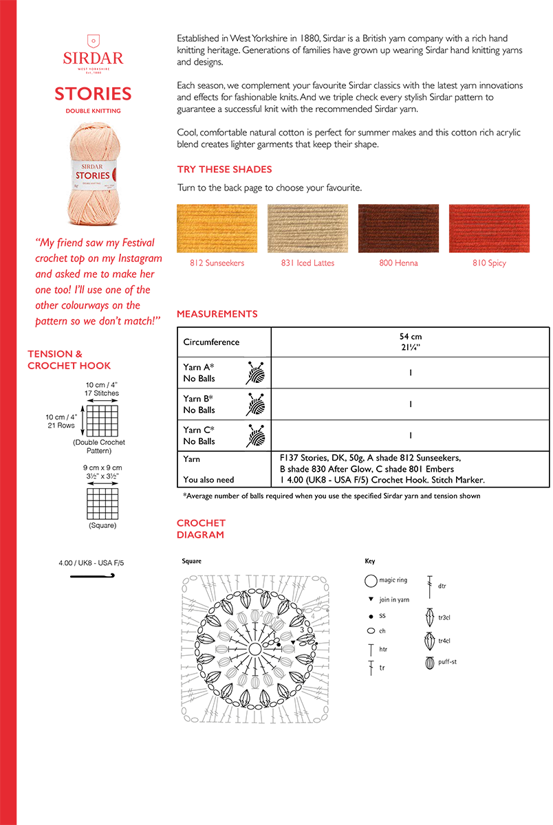 Bucket hats are essential festival wear, a simple accessory that’s bang on trend this Summer. To create this sunflower-inspired bucket hat, you will crochet granny squares for the crown and sides of the hat and then stitch striped double crochet for the brim.