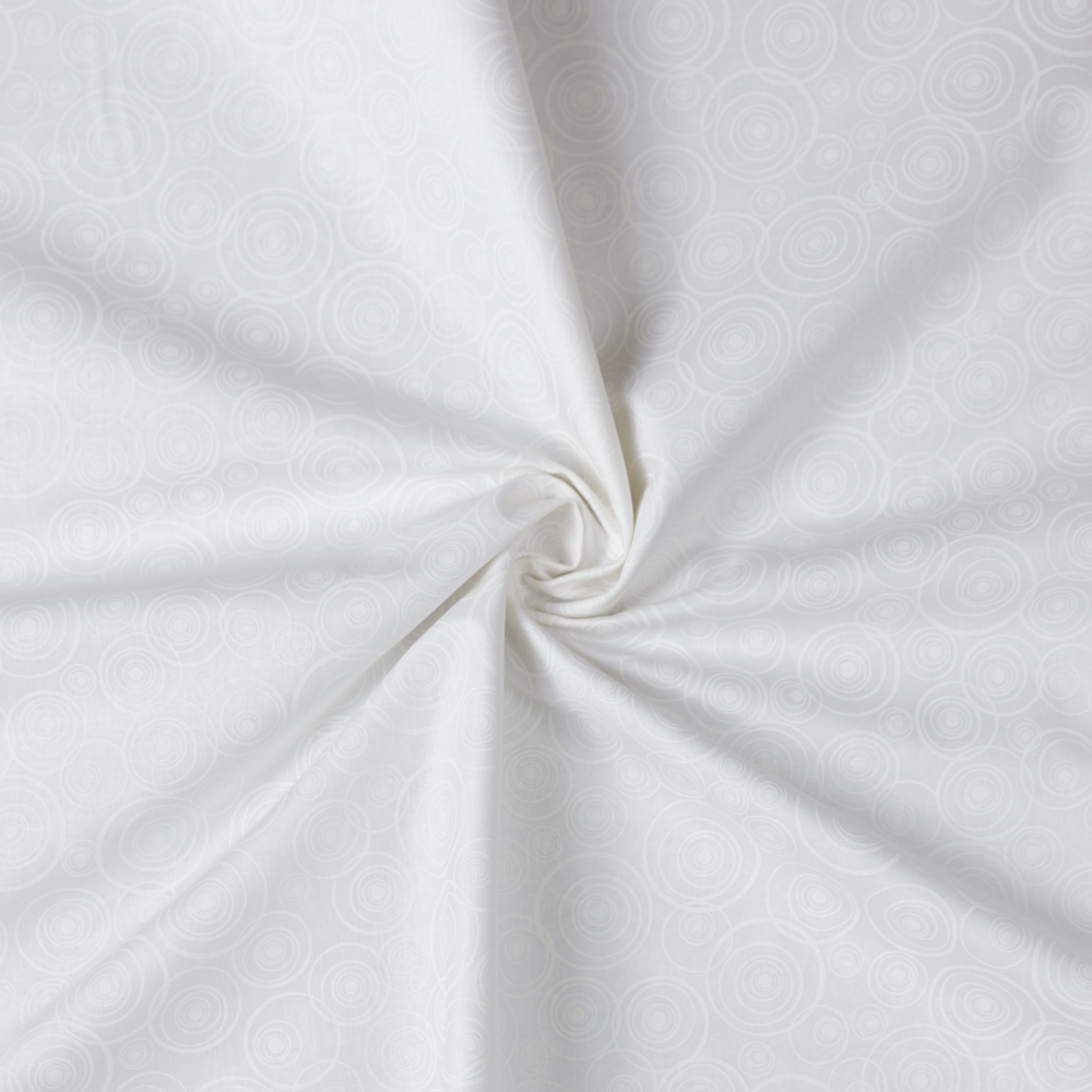 Ideal as a blender, this print features subtle white swirls set against a white background. Beautiful, high quality, printed cotton fabric. Ideal for quilting, masks, crafts, displays, table decoration and as a dressmaking fabric.