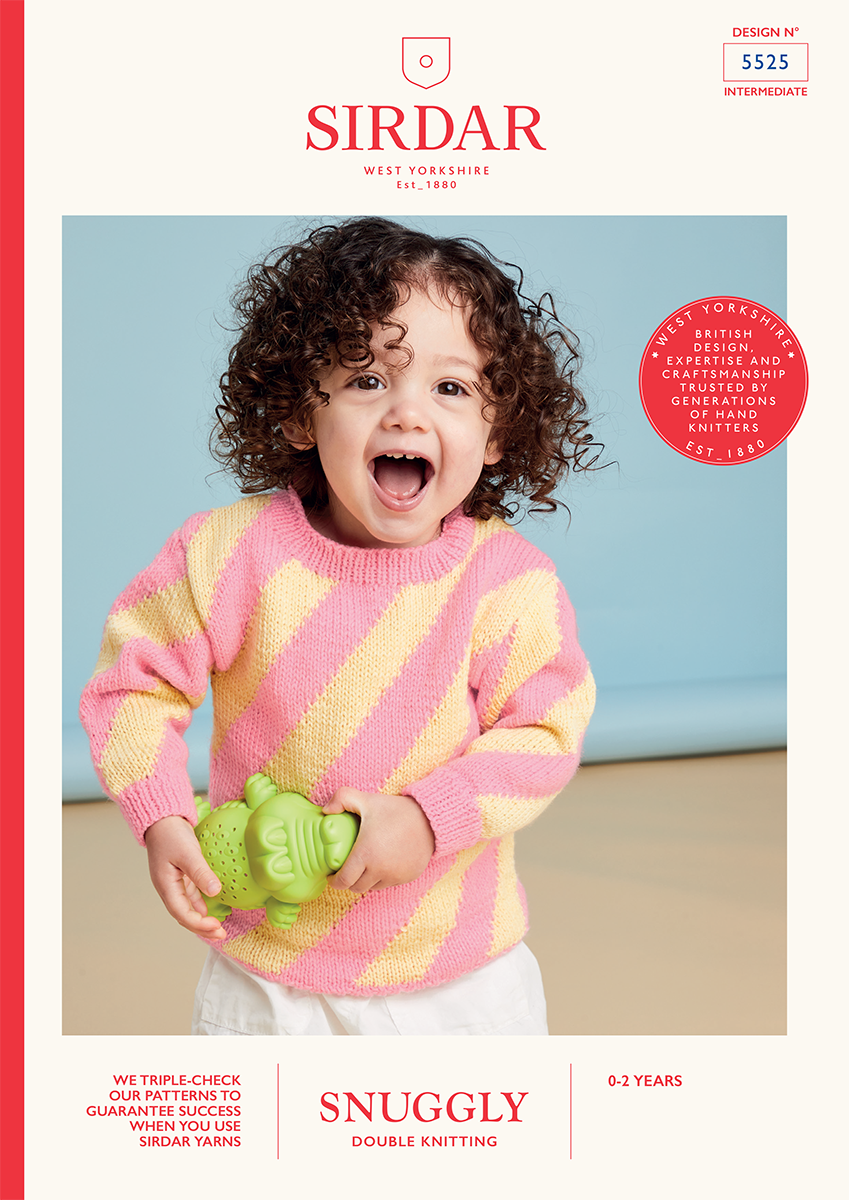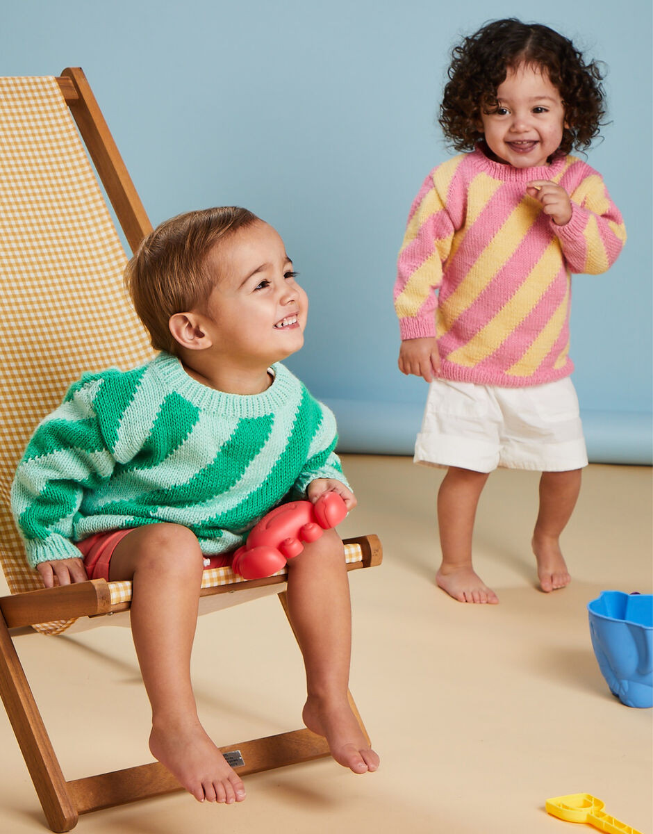For an easy introduction to intarsia technique create this simple diagonal striped sweater using two shades of Snuggly DK.