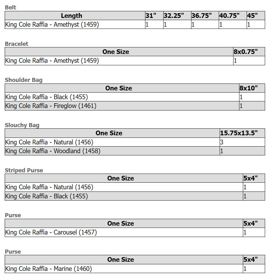 Belt, Bracelet, Bags & Purses in King Cole Raffia (4340)