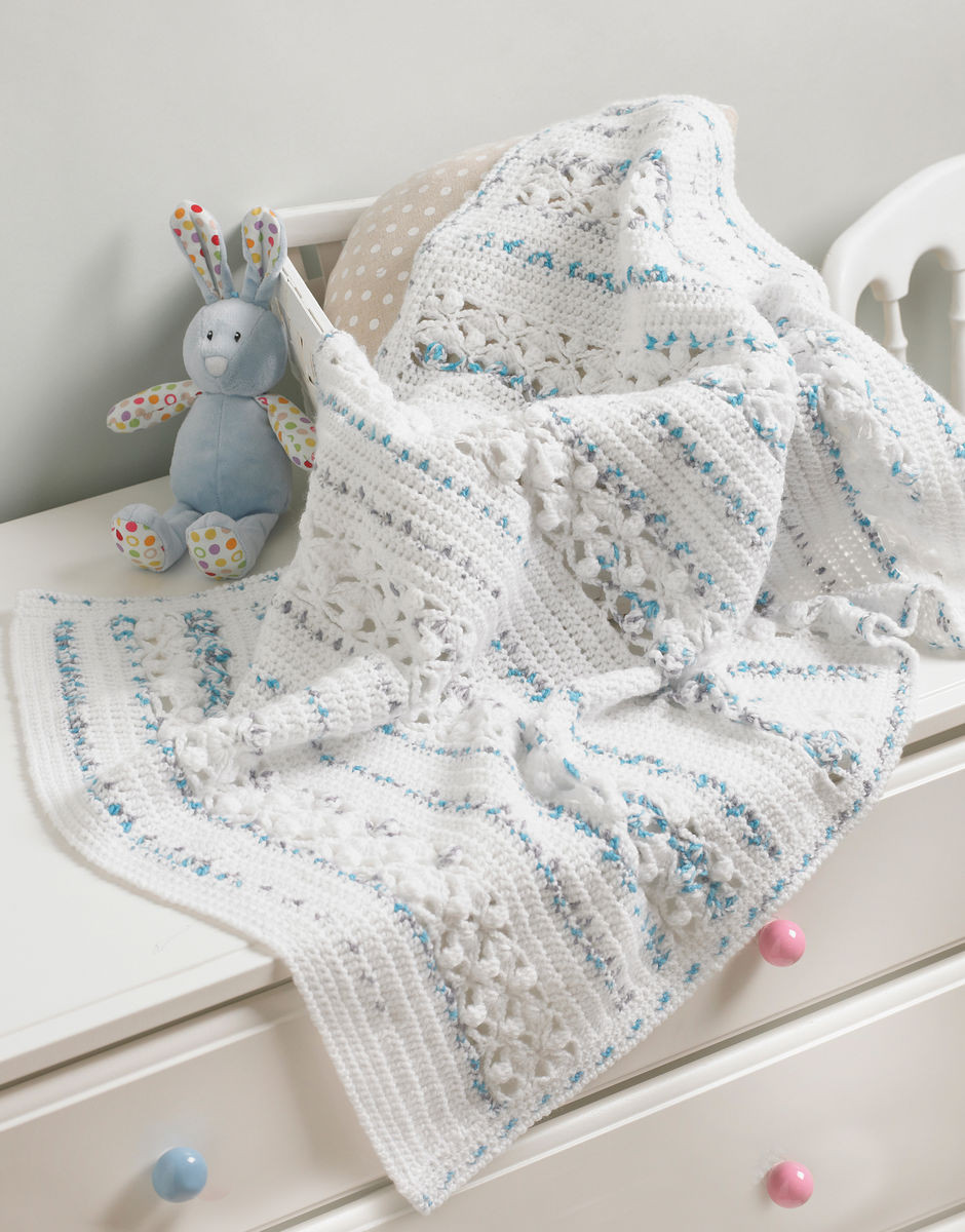 Easy crochet blanket in self-patterning Hayfield Baby Blossom DK.