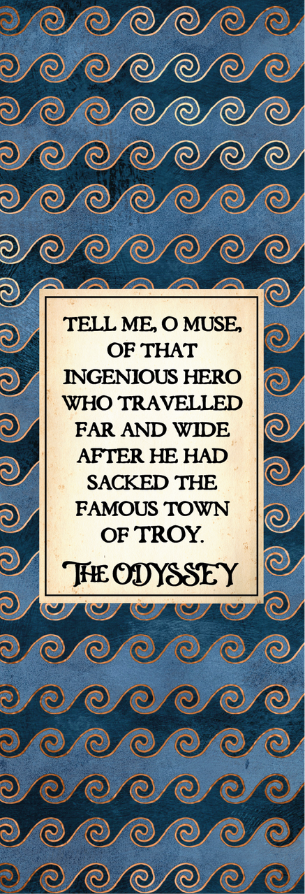 The Odyssey Bookmark features a quote from the Grecian epic, framed in classical inspired artwork. The bookmarks pay homage to some of our favourite mythology.