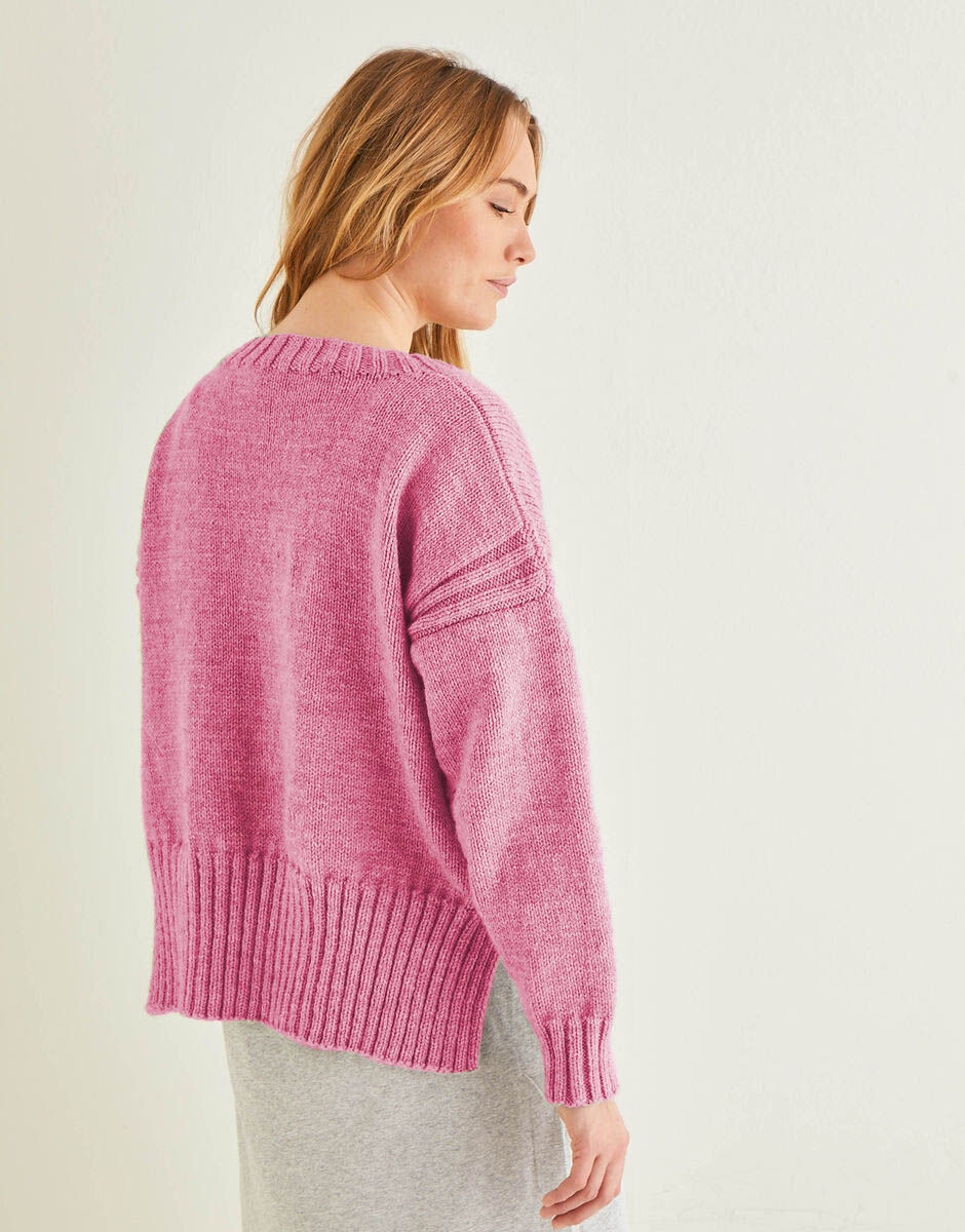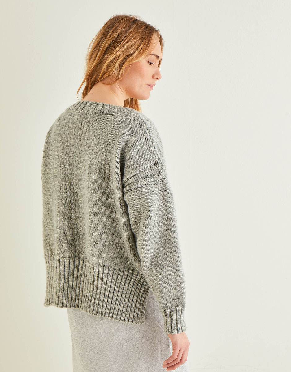 Shoes off, kettle on and relax. This over-sized boxy sweater from our Home Comforts collection features a flattering round neck, relaxed dropped shoulders, laid-back split seams and a stepped hem for an extra toasty behind. Even the easy stitches are stress free.
