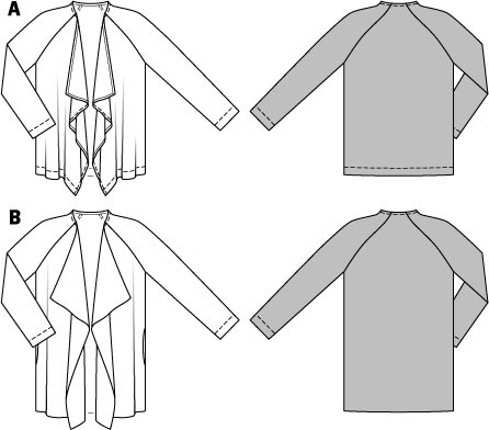 New feminine silhouette with an elegant swing. The raglan sleeves are granting wearing ease. The loosely draped front pieces with a notched collar adds a special bling to it.