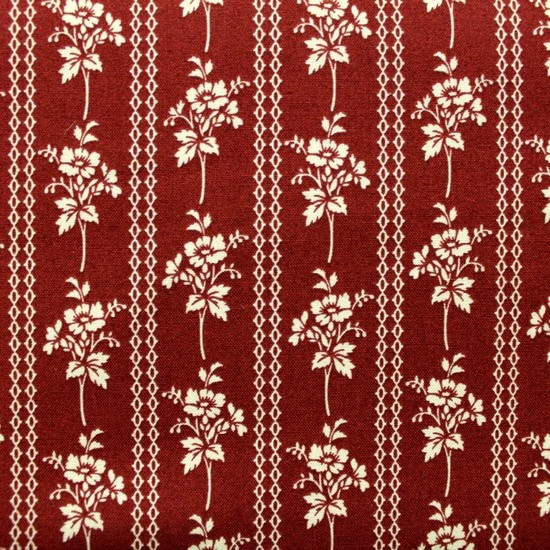 This gorgeous burgundy fabric with cream floral stripes is ideal for quilting, patchwork, dressmaking, bunting and cushion covers. This fabric is soft, durable and great value.