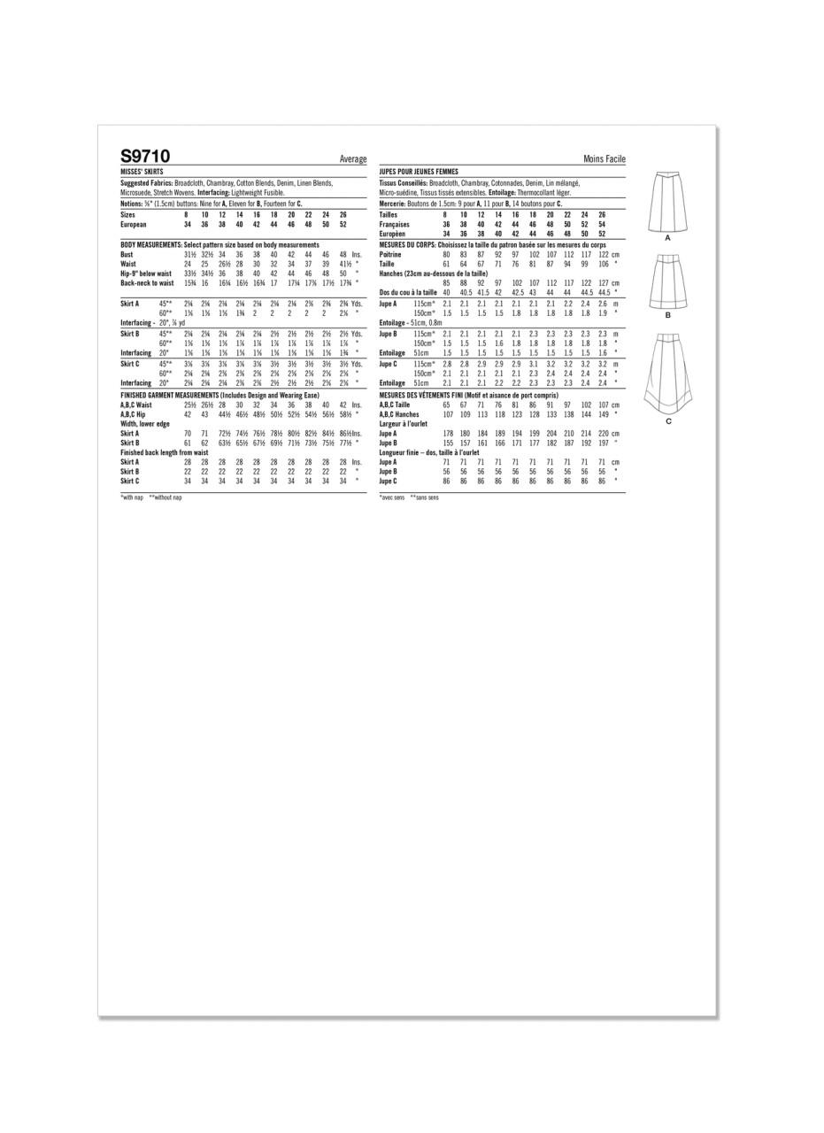 Button-front skirts feature yokes and have length and hem variations. Skirts include front slant pockets or flap pockets with button closure.