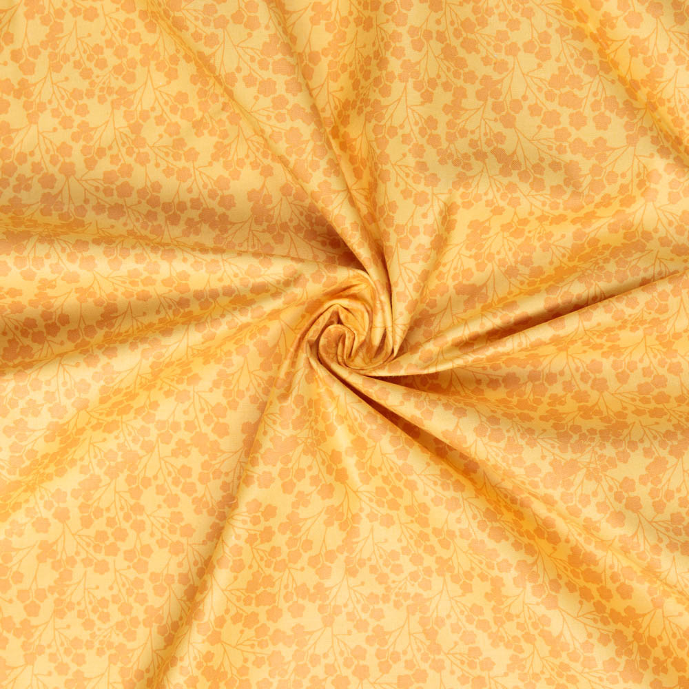 Floral silhouette in dark yellow against a lighter yellow background. Beautiful, high quality, printed cotton fabric. Ideal for quilting, masks, crafts, displays, table decoration and as a dressmaking fabric.