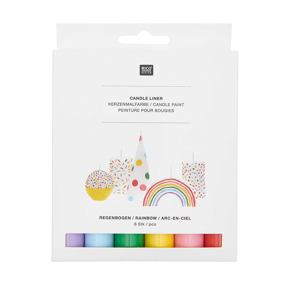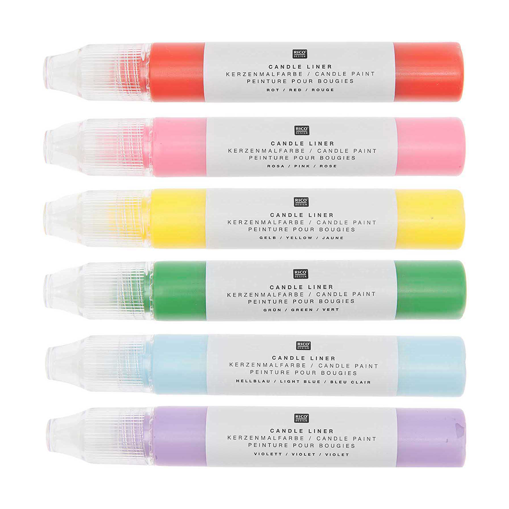 Giving homemade candles a very special touch of your own – this is made easy with the Candle Liner candle paints. The pens with a fine painting tip contain a soft wax mixture in different colors. The desired motifs are simply painted onto the candle. When the candles burn, the motifs simply melt. With a candle liner you can paint on a candle like with a pen. Simple, monochrome candles become eye-catchers with colorful patterns such as dots, stripes or lines. With a little practice, more elaborate motifs such as flowers or lettering can also be conjured up on the candles. The 6-piece set contains the 6 rainbow colors. 6 x 30ml in a practical pen