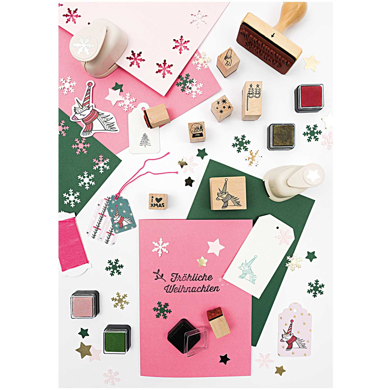 - Contents: 18 cards and 18 envelopes in shades of green and red.