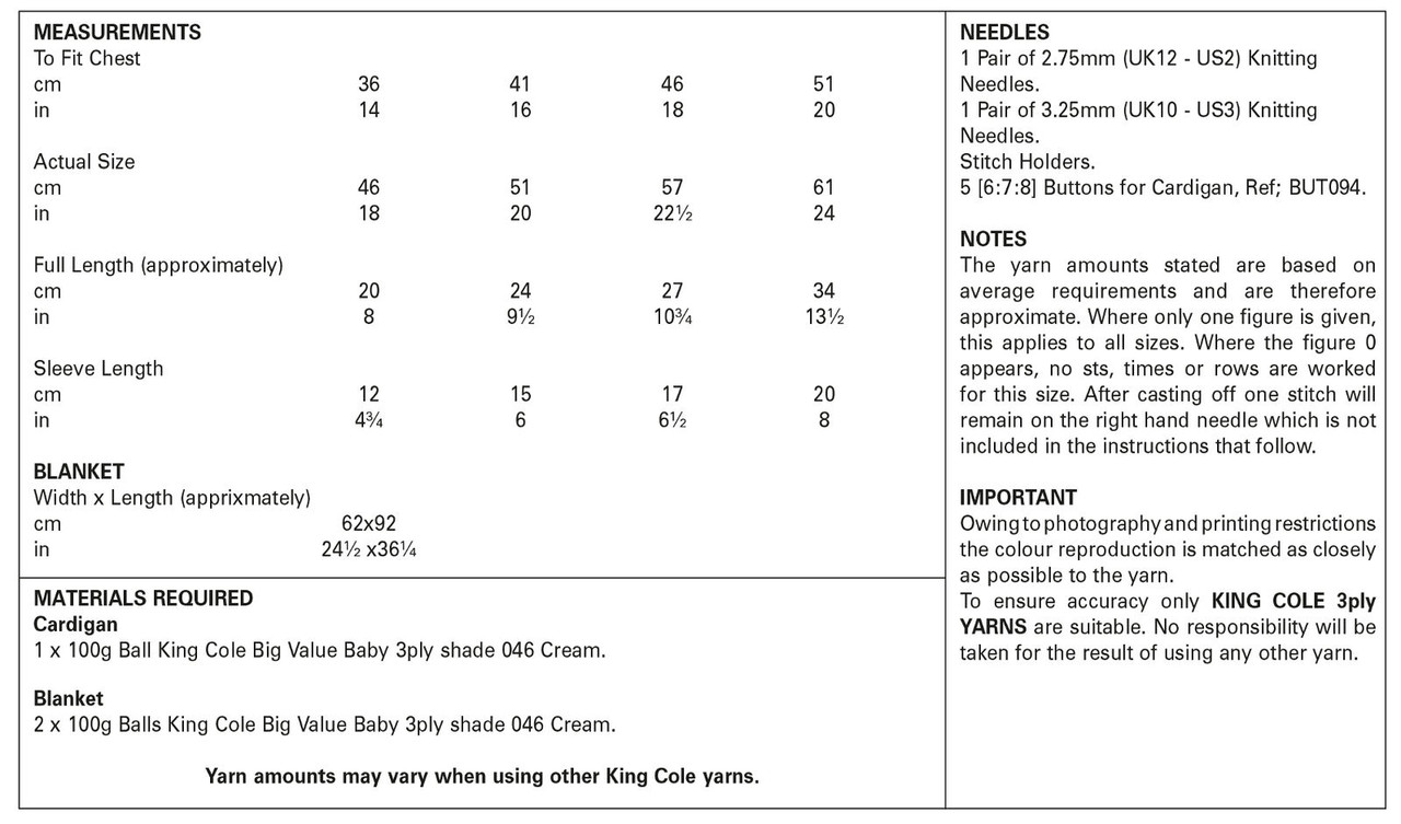 Cardigan & Blanket in Big Value Baby 3 Ply (5508)