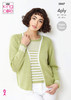 A fresh looking cardigan and top worked in stocking stitch using King Cole Giza Cotton 4 Ply. The cardigan features a two-colour band detail at the cuff, and the narrow button band and hem are worked in the second colour to create an effective 'piping' effect. The top's two-colour horizontal stripes narrow at the yoke section and its cap sleeves make it a perfect summer wardrobe addition.