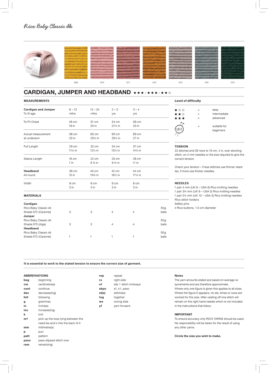 Cardigan, Jumper & Headband in Rico Baby Classic DK (1031) - PDF
