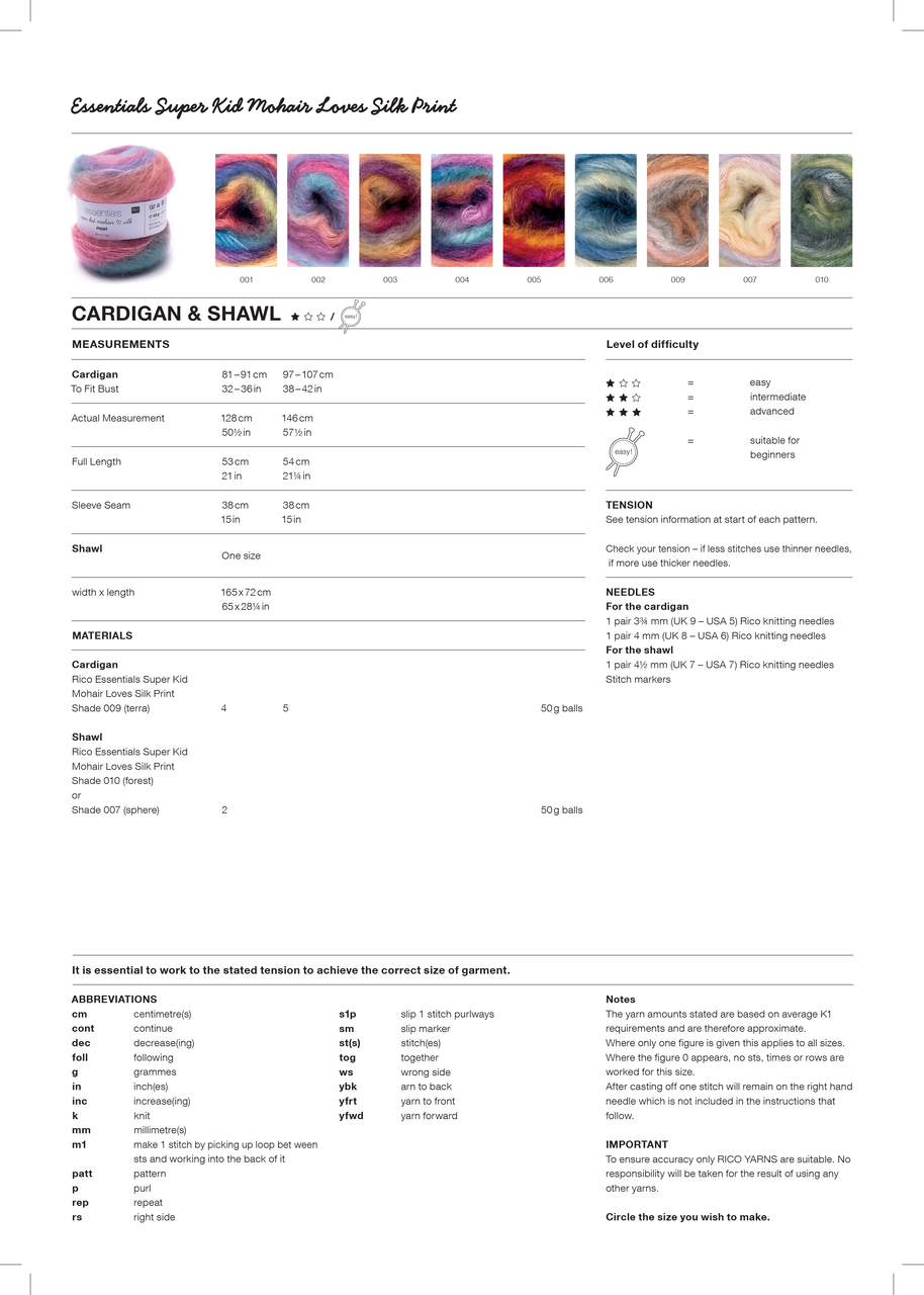 Cardigan & Shawl in Rico Essentials Super Kid Mohair Loves Silk Print (1065) - PDF