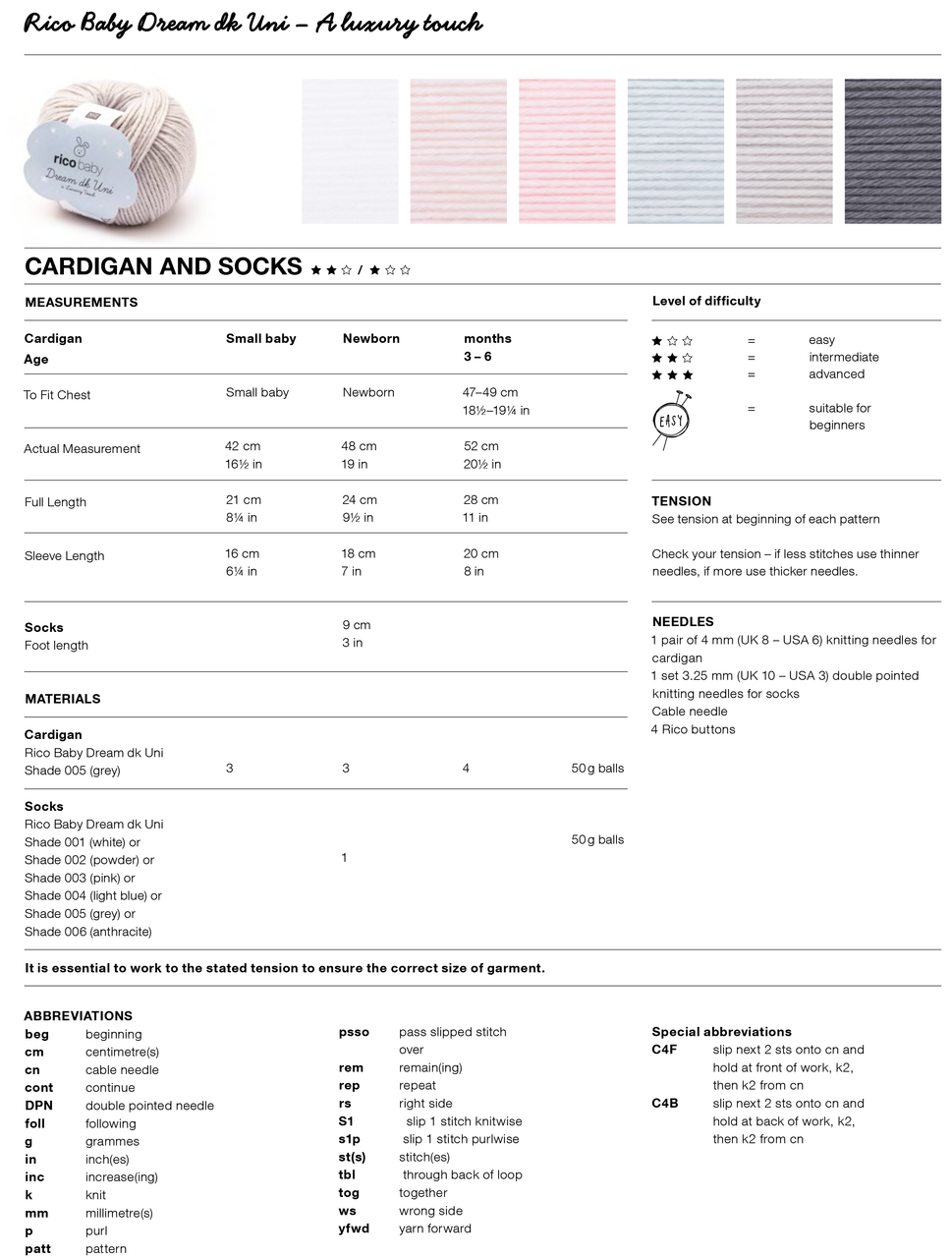 Cardigan & Socks in Rico Baby Dream DK Uni (794) - PDF