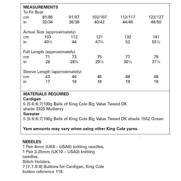 Cardigan & Sweater in King Cole Big Value Tweed (5707)