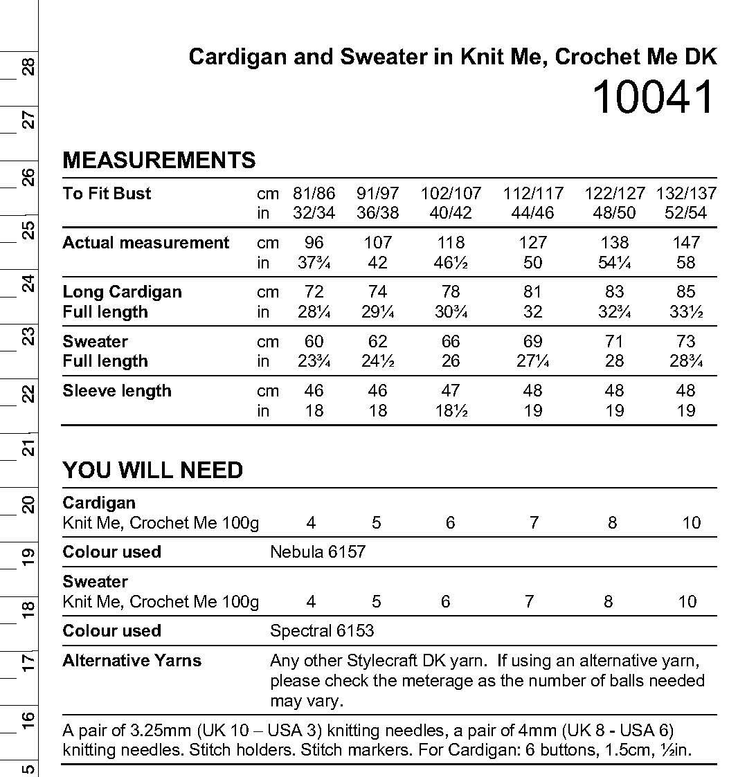 A pair of 3.25mm (UK 10 – USA 3) knitting needles, a pair of 4mm (UK 8 - USA 6) knitting needles. Stitch holders. Stitch markers. For Cardigan: 6 buttons, 1.5cm, ½in.