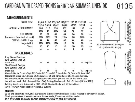 Long and Short sleeved cardigans with draped fronts in Sirdar Summer Linen DK.
